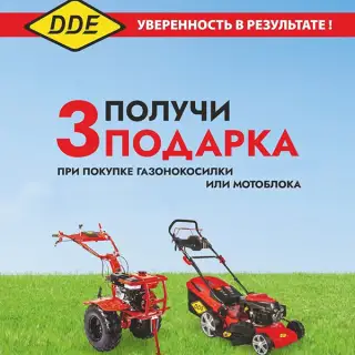Покупайте мотоблок или бензиновую газонокосилку DDE в магазинах торговой сети «Мастер» – и получайте сразу три подарка!